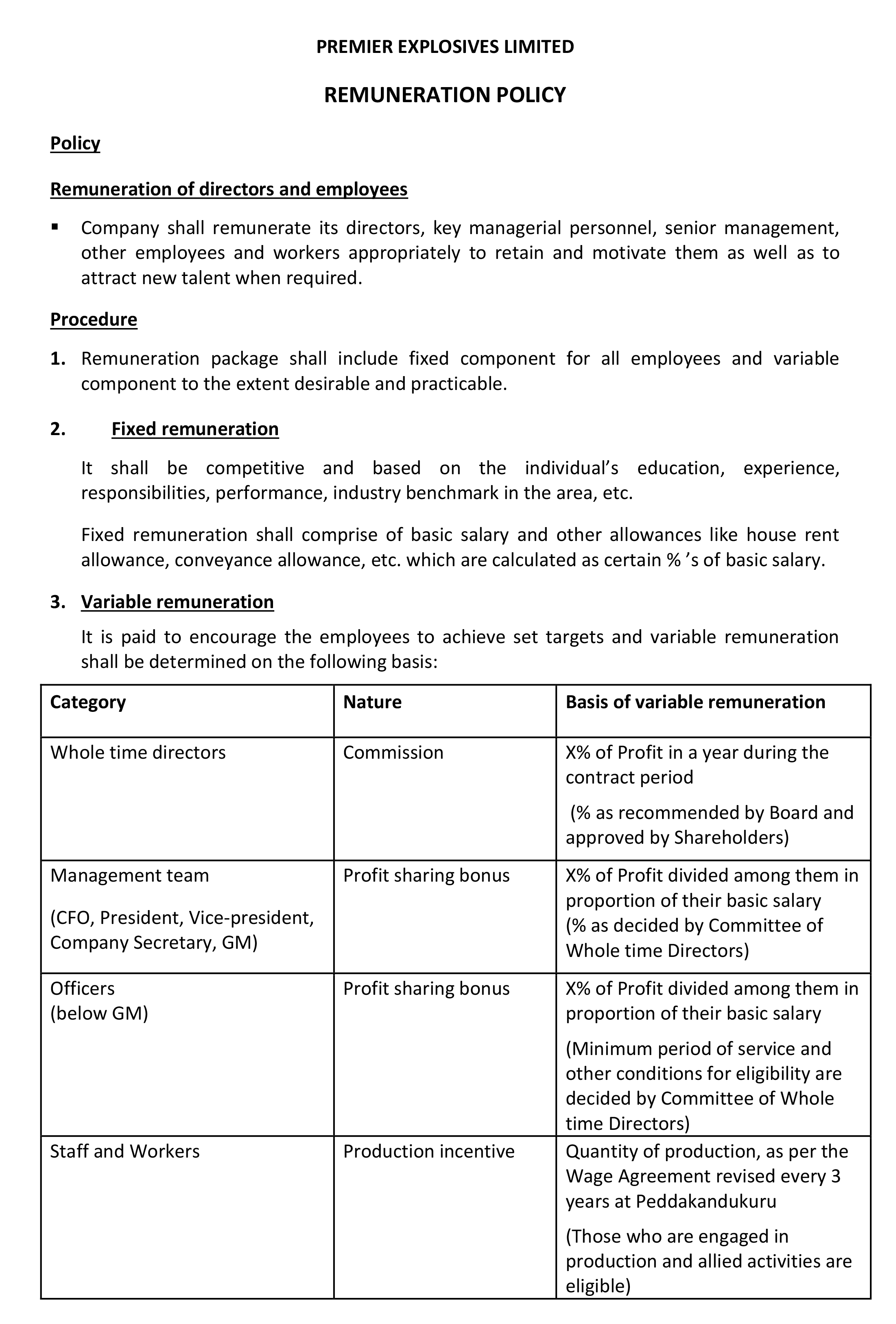 The Board of Directors (the “Board”) of Premier Explosives Limited (the “Company”) has adopted the following policy and procedures with regard to Material Subsidiaries, which may be reviewed and amend by the Board from time to time.